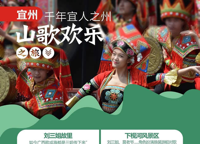 后游覽【劉三姐博物館】劉三姐的傳說最早見于南宋王象之《輿地紀(jì)勝》卷九十八《三妹山》 。明清以來,有關(guān)她的傳說與歌謠文獻(xiàn)記載很多 ,壯族民間口耳相傳的故事與歌謠更為豐富。2006年,宜州市申報的“劉三姐歌謠”,入選第一批國家級非物質(zhì)文化遺產(chǎn)名錄。劉三姐又稱“劉三妹” ,為中國壯族民間傳說中的歌仙。