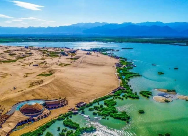 早餐后游覽國(guó)家 5A 級(jí)景區(qū)【沙湖旅游區(qū)】(含門票+大船,參觀約 2.5 小時(shí)),在這里,大漠金沙的豪放粗獷與碧湖葦蕩的恬靜秀美天然的融合在一起,構(gòu)成一派大漠水鄉(xiāng)的沙湖 奇觀,湖水、沙山、蘆葦、飛鳥(niǎo)、游魚(yú)、荷塘在毛烏素大漠之上,營(yíng)造出中國(guó)絕無(wú)僅有的勝地。